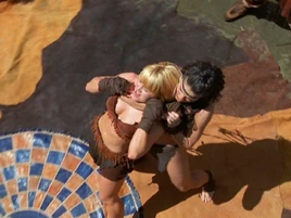 Amazon High Queen Varia and Telaquire Amazon Queen Gabrielle in a hand-to-hand royal combat