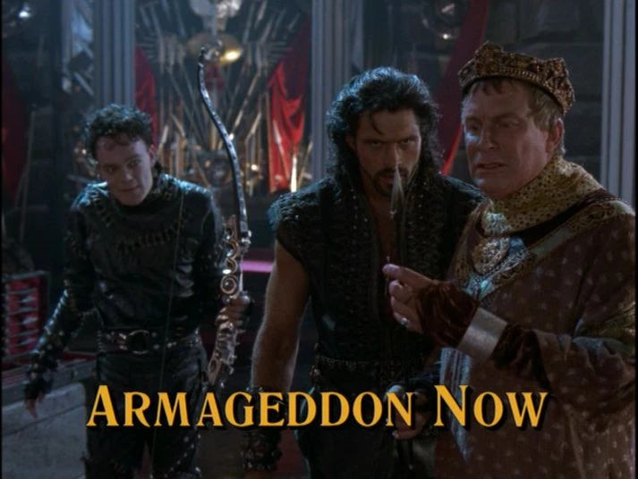 - The title is a reference to the film "Apocalypse Now". Ironically, while the word "armageddon" is a Greek transliteration of a Hebrew place name, the word "apocalypse" is wholly Greek in origin.