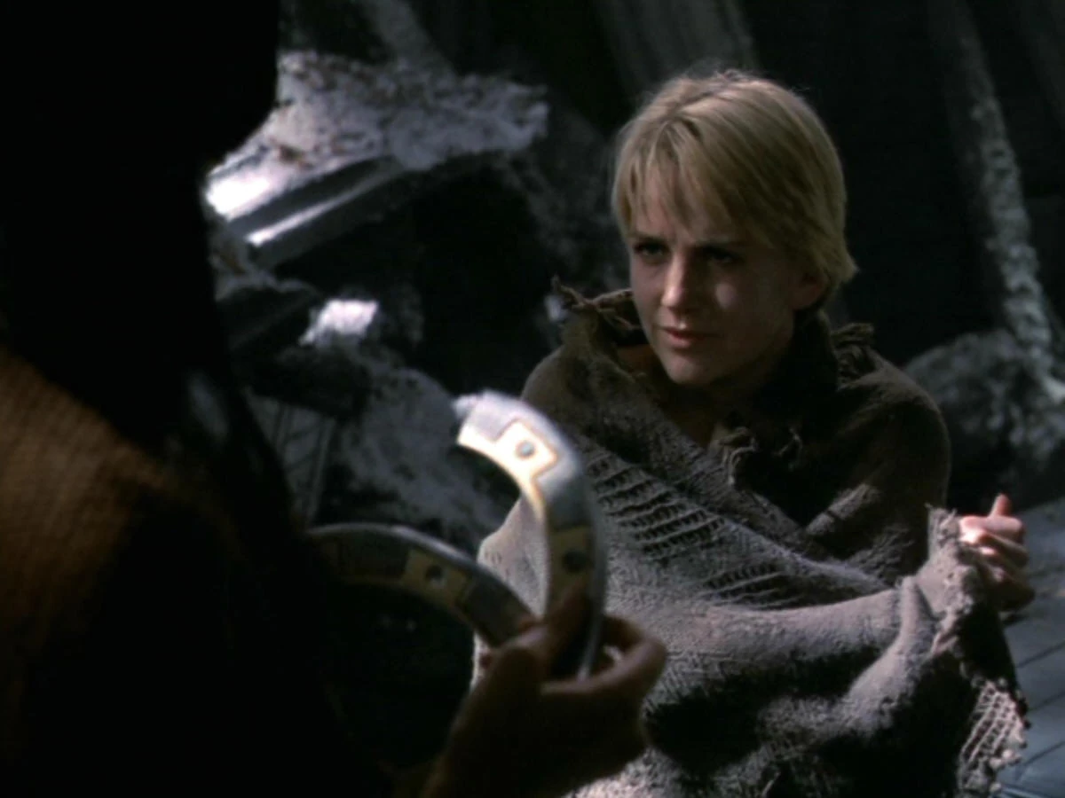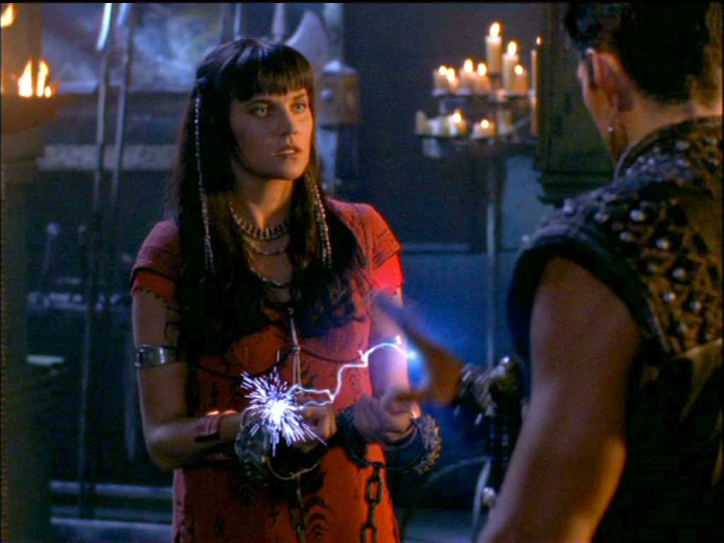 Later, Xena and Amarice are hunting for food when they are attacked by Kal's lieutenant. Amarice is knocked unconscious and Xena is taken to Kal's fortress, where she is put in manacles.