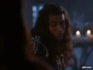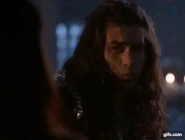Joxer and Amarice stare in wonder as Xena and Gabrielle lock in an emotional embrace. Eli has done what seemed to be the impossible -- raise them from the dead. Joxer says he is glad they aren't dead. Amarice pulls the two broken halves of Xena's chakram out of her bag and Xena eyes them curiously. Amarice puts a blanket around Xena and gives her the broken chakram. Joxer leads Amarice away.