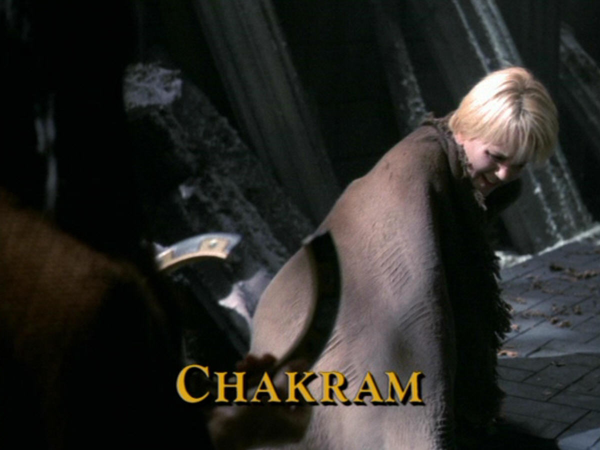 - "Chakram" debunks the episode "The Xena Scrolls", by changing the design and function of the chakram, which would be found by Melinda Pappas in it's original design.