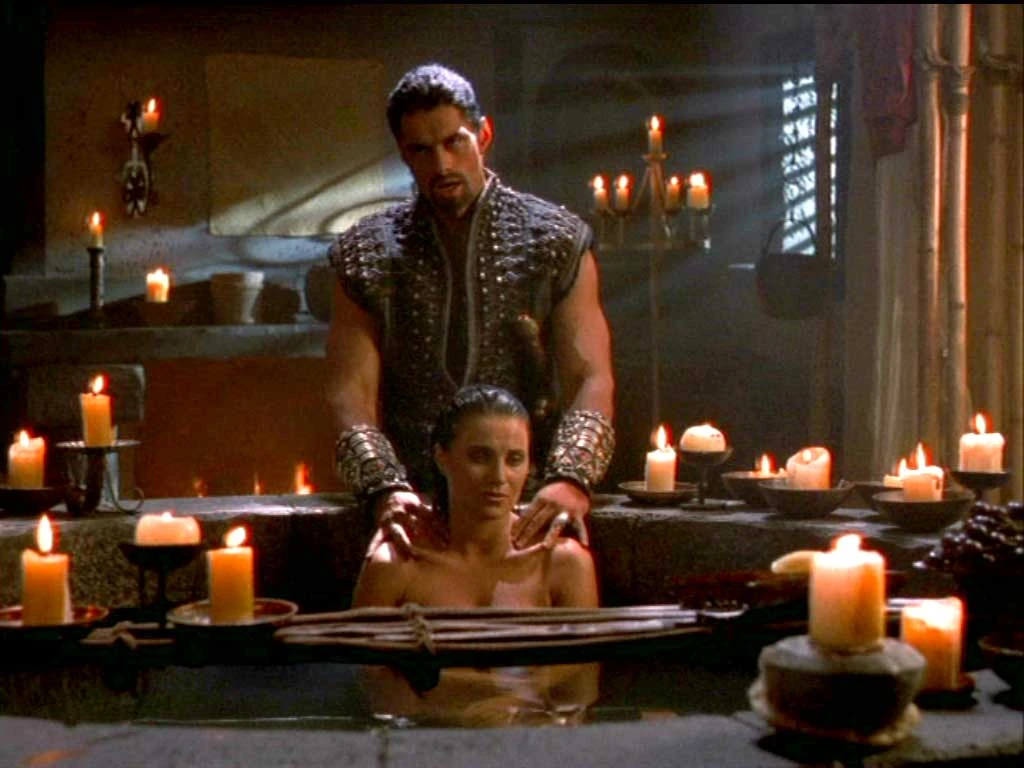 Ares appears to Xena. He gives Xena a massage. Xena doesn't seem to understand what "bad" is. Ares gives Xena the speech about how they are destined to rule the planet together and bring order to the Earth. Ares moves in to kiss Xena.