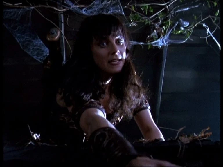 As the henchmen approach, Xena still refuses to unchain Varia, who lets out a whistle and reveals their location. Leaving Varia chained to a log, Xena takes off and quickly defeats all three men. Traveling on, the two women take refuge in an abandoned temple where Xena explains to Varia that she can't save her village on her own and that she's protecting her at Marga's request. When Varia suddenly lashes out, Xena challenges her to a fight and easily defeats the young Amazon. As Varia crashes backward onto the rotting floorboards, the floor splits open and she falls through.
