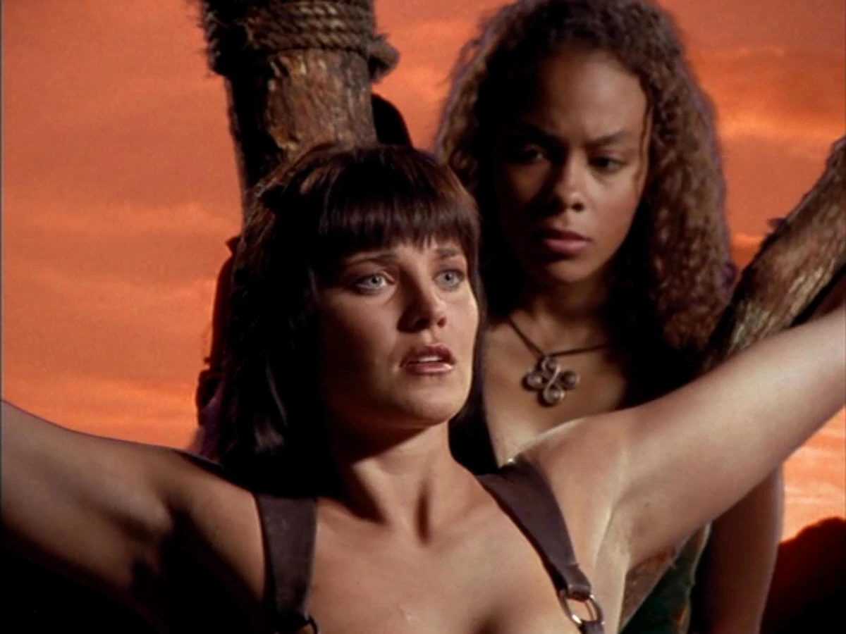 - This is the first time we see Xena on a cross.
