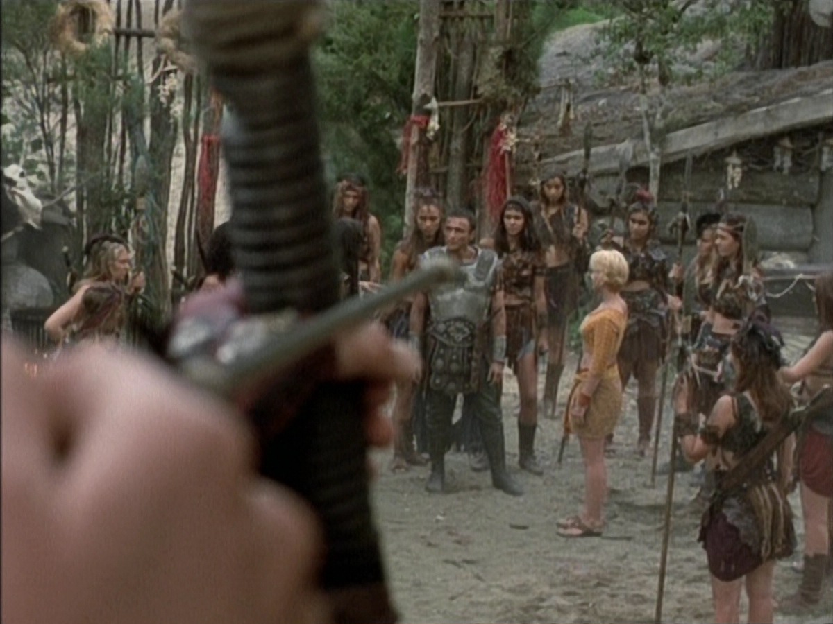 Fortunately, Xena had arrived at this campsite before Pompey's men and managed to hide the weapons underneath the spot of the ambush. Xena and the Amazons escape and take a group of Roman soldiers as prisoners. Upon hearing the news of his troop's defeat, Pompey orders his troops to return to the Amazon village.