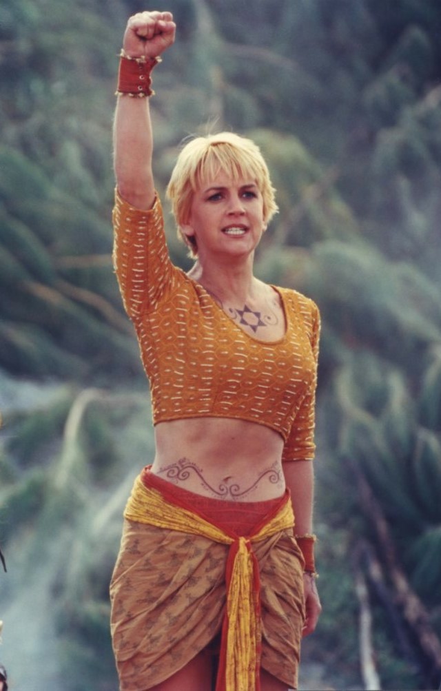 Amarice protects Gabrielle during the big battle