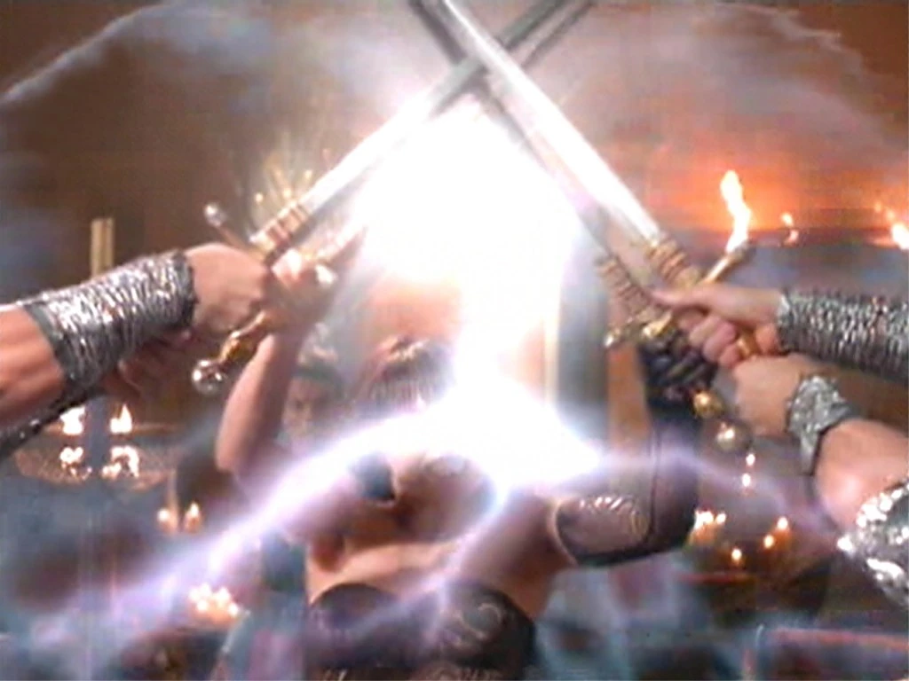 an intense battle between Xena and the archangels begins.