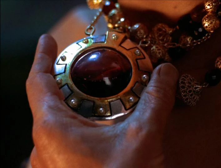 The Hind's Blood Pendant was first worn by Xena 2. It is a small glass phial in the shape of Xena's chakram and it holds the blood of a Golden Hind. A dimensionally-displaced Iolaus realized the pendant's significance and liberated it from Xena. (HTLJ "Stranger in a Strange World"). Callisto became the first to prove that Hind's blood could kill a god when she used it to create the Hind's Blood Dagger and killed Strife (HTLJ "Armageddon Now").