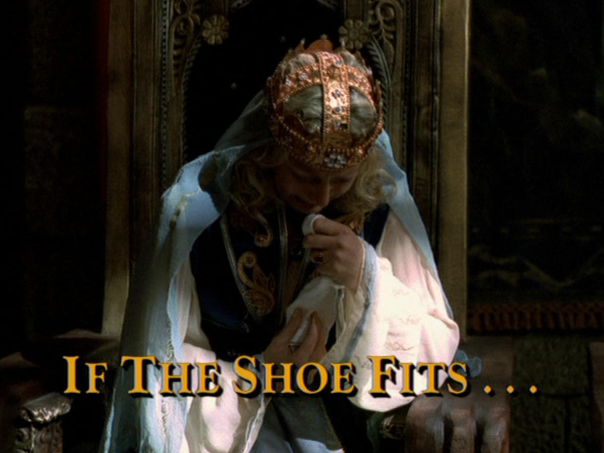 Meanwhile, Xena leaves camp to take care of Zantar's men and tells Joxer to continue the story. In Joxer's version, the hero is Tyro and his evil stepfather wants to prevent him from going to the royal ball. But Tyro's Fairy Godsmother, Harmonia, helps him prepare for the affair and warns him to leave by sundown. When Tyro enters the ballroom, he immediately catches the eye of the Princess. When his time expires, Tyro runs out of the room with one of the Princess' shoes.