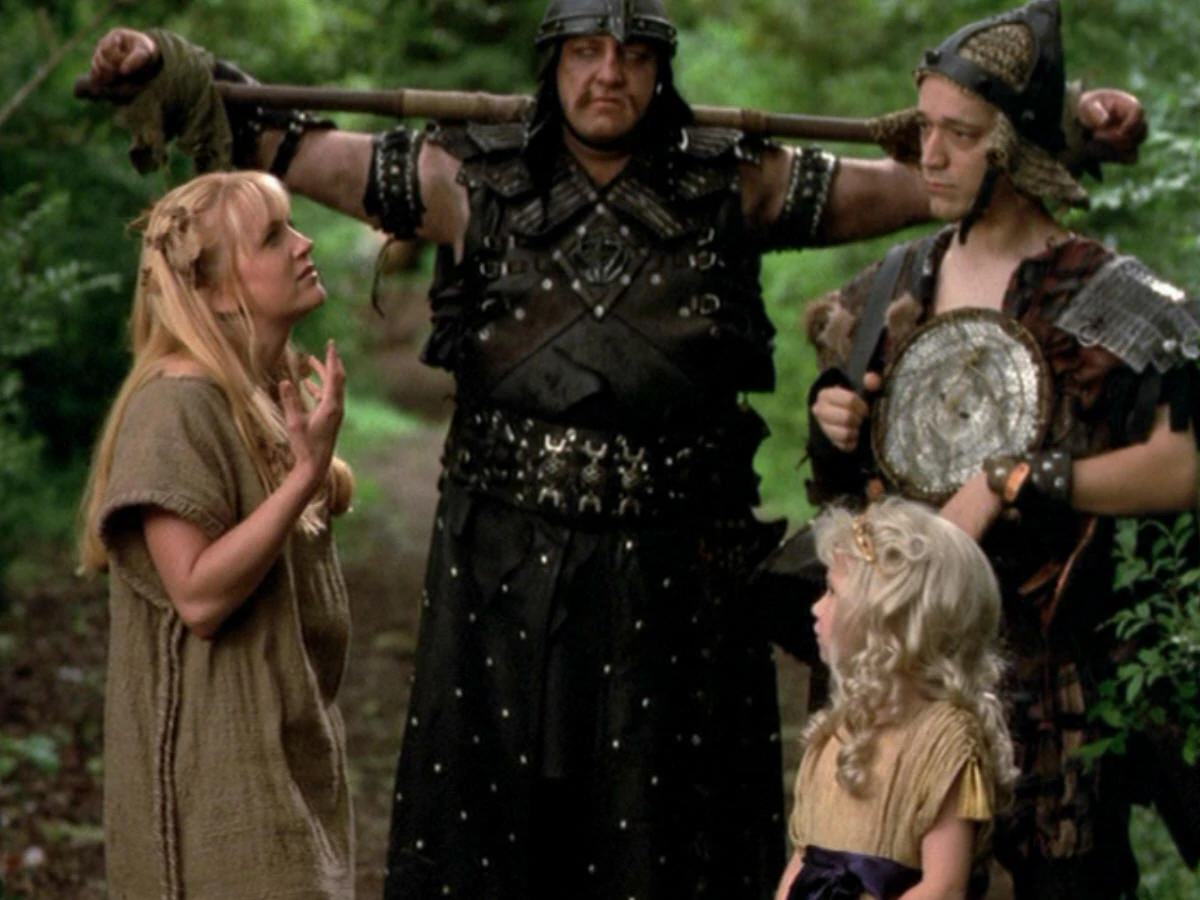 When Gabrielle realizes they are being followed by Zantar's brothers, Xena takes off to distract them and leaves Gabrielle behind to tell Alesia a story. Although perturbed at being assigned babysitting duty, Gabrielle begins her story about the cheerful Tyrella and her wicked stepmother Sidero and evil stepsister Pelia.