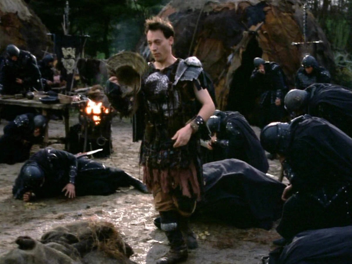 Xena, Gabrielle and Joxer infiltrate the Scythian camp and Xena replaces the cook with Joxer. By now, Xena realizes that Joxer is the one carrying the stomach virus that is making everybody sick. While she sends Joxer into the camp, Xena finds Argo resting in her own tent. She tries to coax her horse into leaving, but Argo is reluctant and starts to make sounds. Joxer is distributing stew to all the soldiers, telling them stories of all the armies he's cooked for (who had disasters afterward).