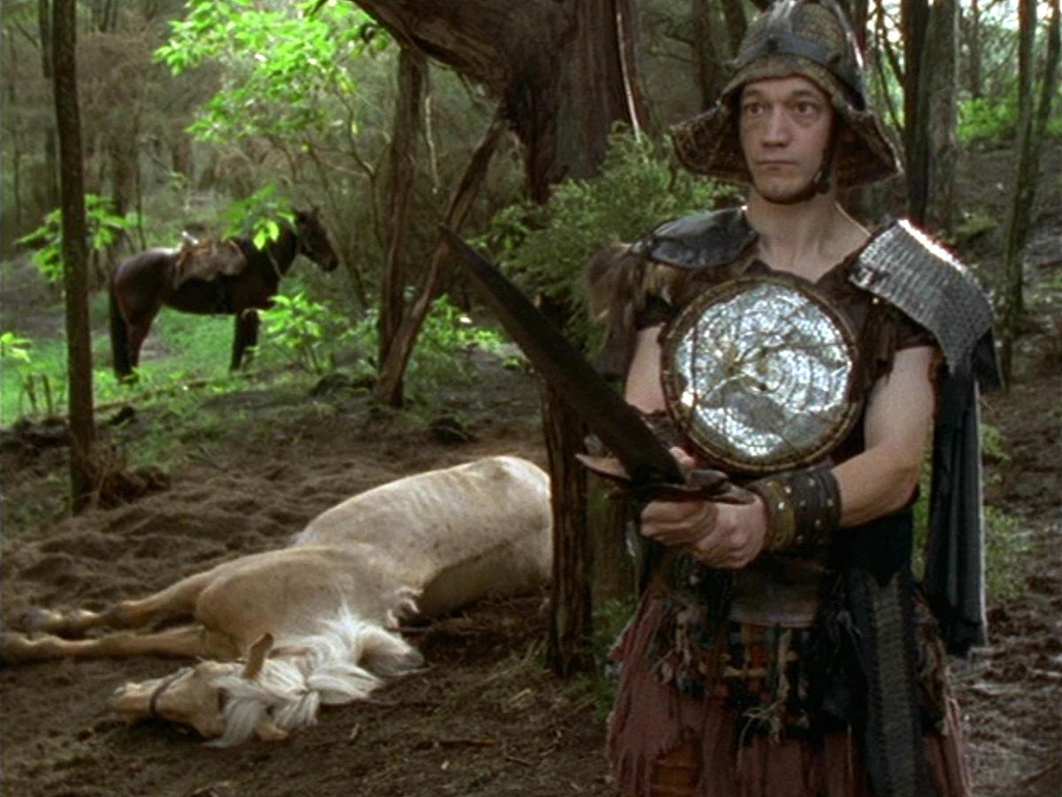 As the two set off for Amphipolis, Callisto lags behind and secretly wounds Argo so that Xena will have to put the horse down when she finds her. Xena, however, arrives on the scene just in time to save her beloved animal. At the same time, Callisto reaches the temporary cave headquarters of Theodorus and his men. Posing as Xena, she slays Theodorus and commands his warriors to capture Amphipolis and bring all of its inhabitants to her. Xena soon approaches, accompanied by Joxer, who now knows her true identity.