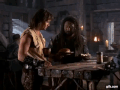 As Crown Prince, Jason continued training at the Academy, as well as hanging out with his former advisors, Hercules and Iolaus, often at Kora's Inn. His next adventure was aiding Hercules in seeking out the Chalice of Zeus.[15] He was briefly enslaved by Zaird alongside the Telaquire Amazons[16] and commands the regiment that battled the Loax Gang when they took over the Academy.[17] Jason's friendship with Hercules was briefly tested when a jealous Hercules accidentally cut Jason's father's sword in training. After rejecting a "new sword," Hercules was able to mend it for Jason and heal the damage.[18]