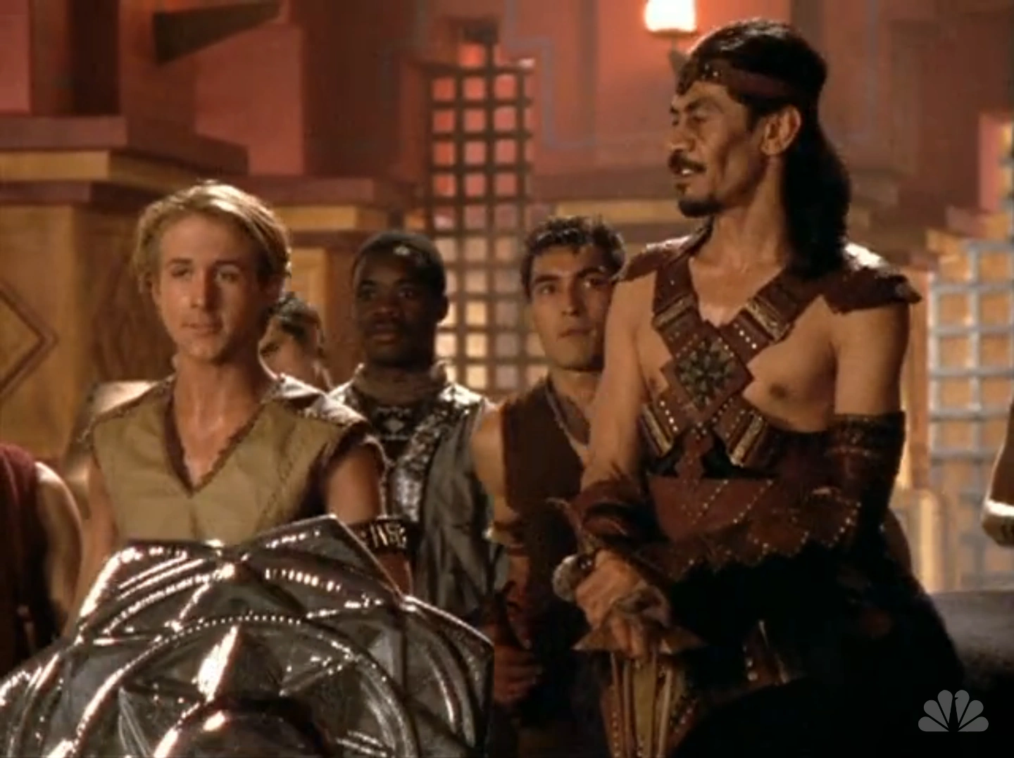 Hercules, Jason, Iolaus, and Lilith are at Kora's when a messenger arrives for Jason with a birthday present. Jason opens it. It's his father's sword and shield.