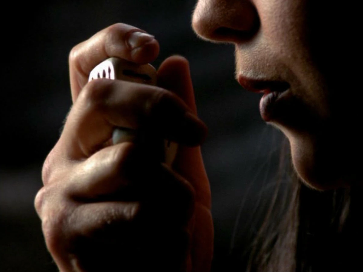 When Xena beats Titus with four aces, he overturns the table, grabs the ruby and holds Gabrielle hostage with a knife at her throat. Rafe suddenly reappears and a furious fight breaks out. When Titus tries to escape, Xena jumps in and sends him flying.