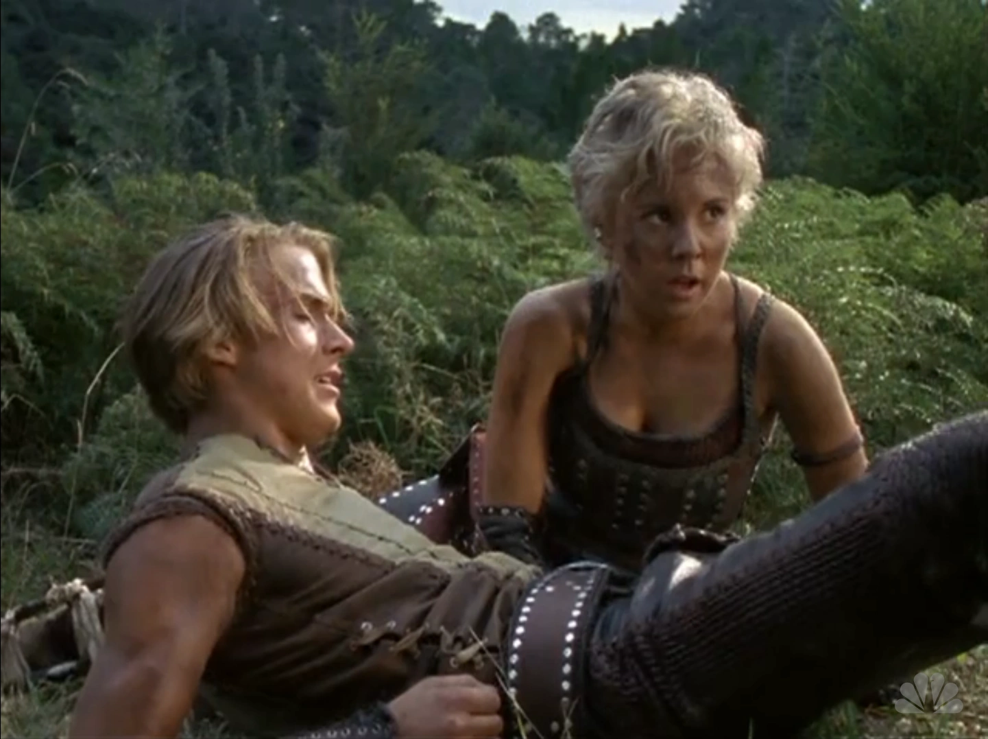 They start talking, and Hercules debates about putting his arm around her to comfort her. He gives in a puts his arm around her. She doesn't mind. As Lilith tells Hercules the story of how her village was attacked by marauders, he listens and adjusts his position. He slides around her and know has one arm draped across her shoulder. She leans back onto him. She finishes the story, and Hercules says he is going to go get help, and will be back soon.