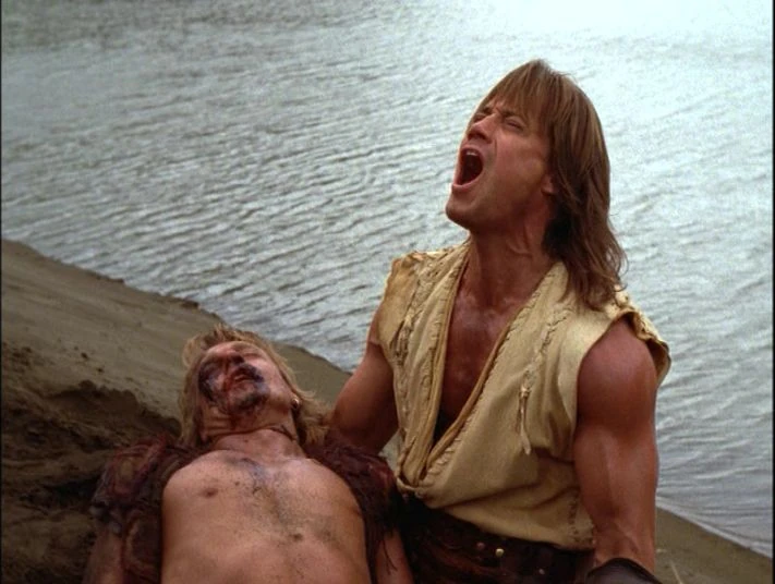 Iolaus, using all his will, struggles back to tell Hercules about the new Enforcer, before dying in his' arms. Alcmene and Jason give their sympathies to Hercules, but he tells them he will not let Iolaus die and begins calling for Hades. While screaming for the god of the underworld, Hercules and Iolaus are transported to the other side. Once there, Iolaus is revived. Hercules is so hesitant to tell Iolaus where they are and why they are there that Iolaus finally has to guess who died. The latter not taking this revelation very well just as Hades arrives, Hercules tells him that Iolaus is not staying in the Underworld. Hades says he has no choice, but will be going to the Elysian Fields.