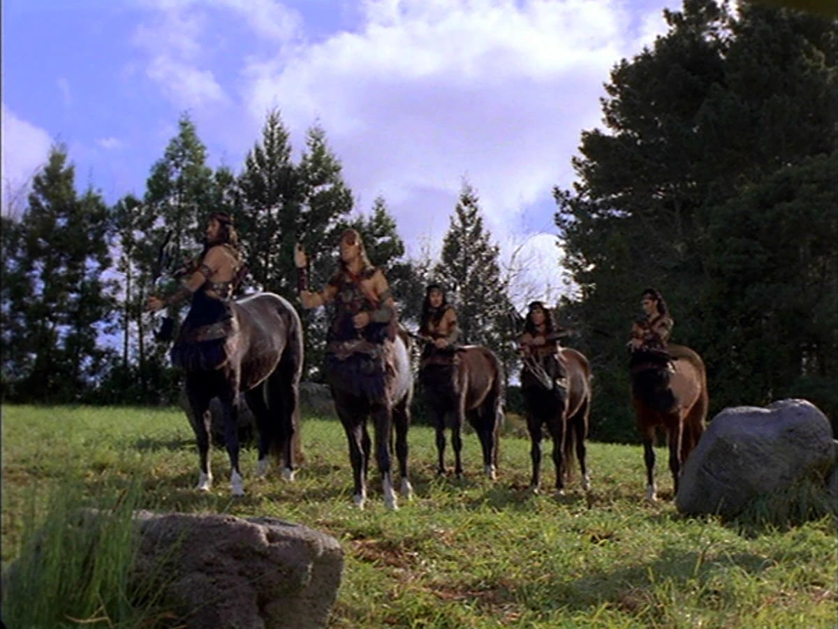 The two are soon attacked by warriors under the command of Dagnine. The warrior princess makes quick work of several of her assailants before a group of armed Centaurs arrives on the scene. Led by the regal Kaleipus, the Centaurs regard Xena with a mixture of fear and hatred. As she tries to assure them that she has come only to protect them from Dagnine, who is seeking the mythical Stone of Ixion, a figure leaps at her from the trees brandishing a sword.