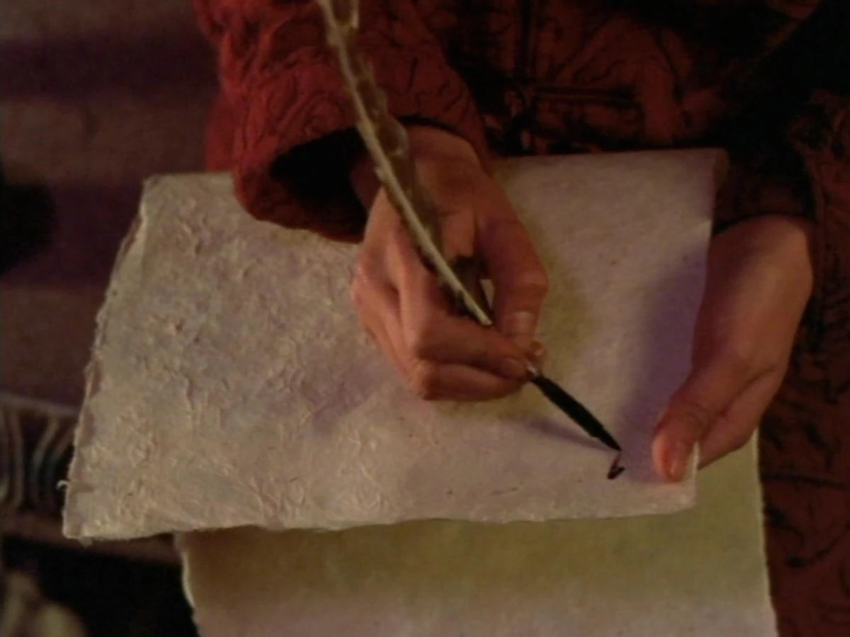 Gabrielle tries to write in her scrolls after a writers block.