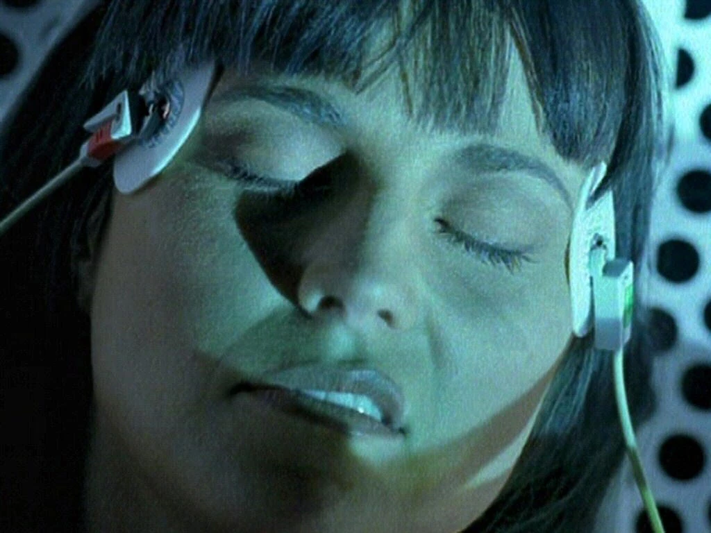 Later that night, a mystery person enters the lab and downloads violent clips from Xena's evil days into the memory of the Xena clone, causing her vital signs to rise significantly.