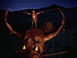 - The running gag about Iolaus being a master of old hunter's tricks continues in this episode when the hero uses a dagger to undo a lock around Charidon's neck.