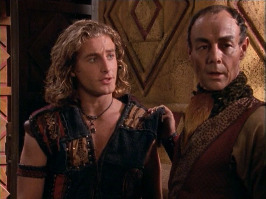 Meanwhile, at Kora's. Iolaus is trying hard to avoid detection by Cheiron, who happens to be at the inn. But, since Iolaus is Cheiron's waiter, he has to think fast and tries disguising himself.