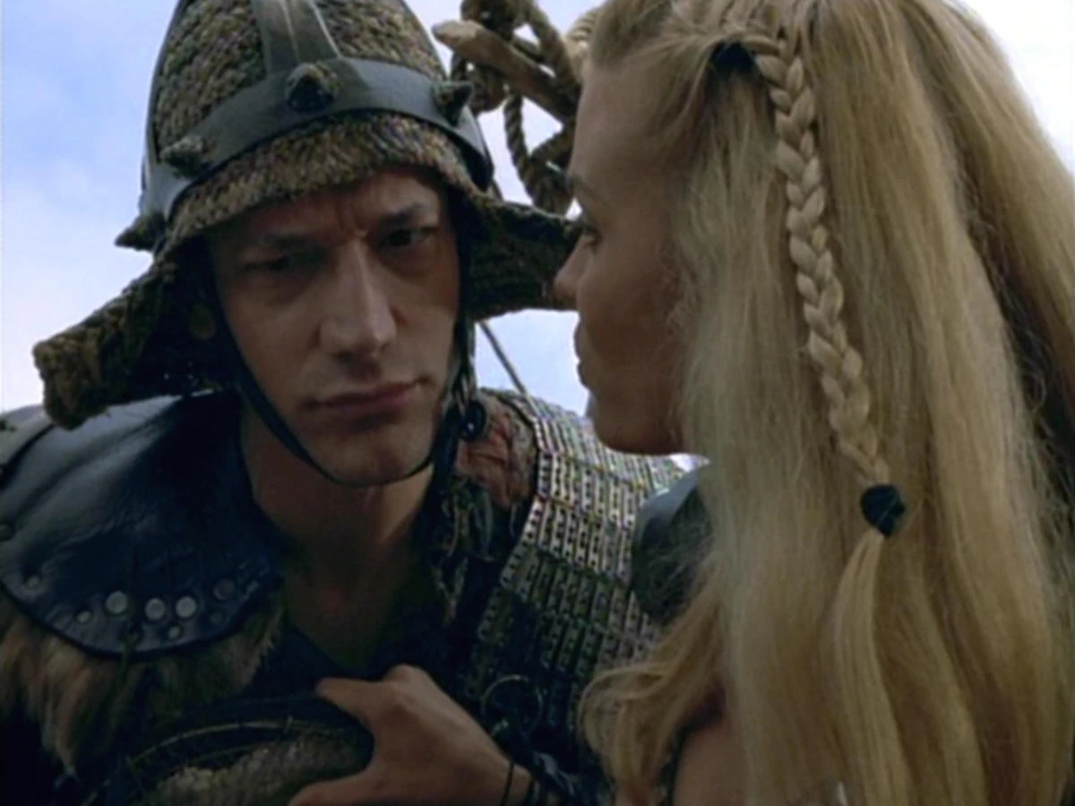 The fallen Ares explains that his sword has been stolen by a mysterious thief, thus robbing him of his powers and condemning him to life as a mortal. It was the thief, not Ares, who sent the invitations to Callisto and her warrior brethren. Ares further explains that without a sitting god of war, peaceful people have lost the self-discipline to control their anger. He refers to Gabrielle, who has become unusually contentious, as a case in point. Only seasoned warriors, who are accustomed to channeling their compulsions, can now control their passions. Xena orders Gabrielle to stay behind as she and Ares set out for the warlords' meeting place. As an added incentive, Ares promises Xena that if they succeed, he will put her back in her real body. On the way, Xena intercepts one of the warriors and knocks him unconscious, enabling Ares to steal his invitation to the gathering.
