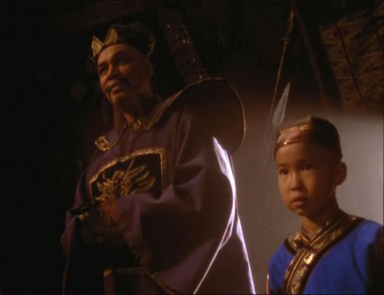 The shrewd Borias makes a show of respect to the mighty leader, but Xena refuses to be impressed. The boy, Ming T'ien, is transfixed by her as the two men discuss a deal. Borias is to raid the Lao province while Ming Tzu remains neutral. In return, Ming Tzu will get half of everything Borias, Xena and their men are able to steal. Xena loudly rejects this proposed arrangement and infuriates both Borias and Ming Tzu.