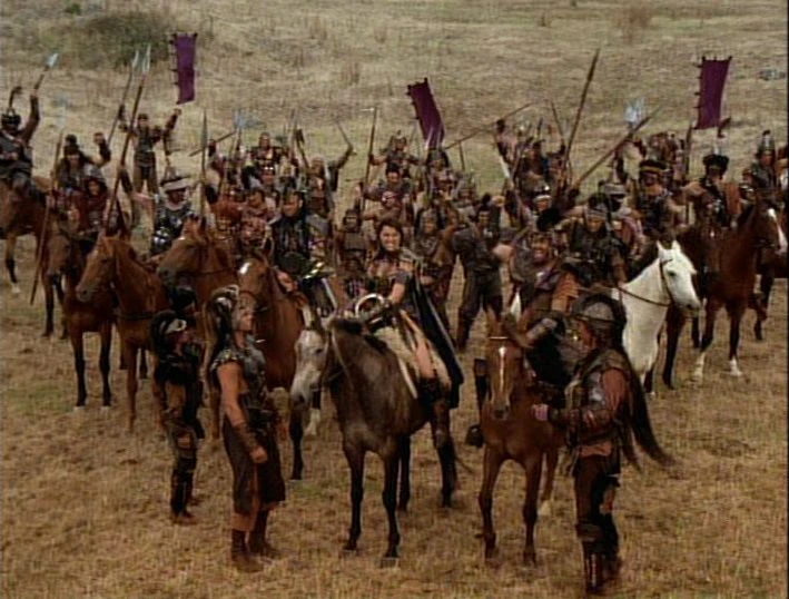 Elsewhere, Hercules meets his cousin, Iloran. He tells Hercules that there is trouble in the Parthian provinces, a gang of marauders has been attacking nearby villages and Parthus, where his mother lives is next. Hercules tells him they have no time to waste and the two set of for Parthus. Meanwhile, Xena and her army prepare to attack the village, as some of the villagers retaliate, Xena throws her chakram and disposes of them.