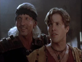 The bandits say they work for Karis and he warns Deon about the company he keeps. Karis says it is a misunderstanding, but Hercules says "slippery people eventually slip up." When Hercules leaves, Karis says they will soon have their "very own son of a god."