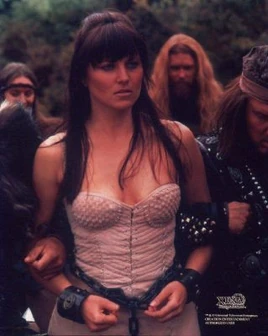 Unable to convince them of the truth, Xena doesn't want anyone else getting hurt, but doesn't want to be captured either. She swings her sword around above her head. as Villagers step back. Xena manages a quick escape on horseback with Gabrielle.
