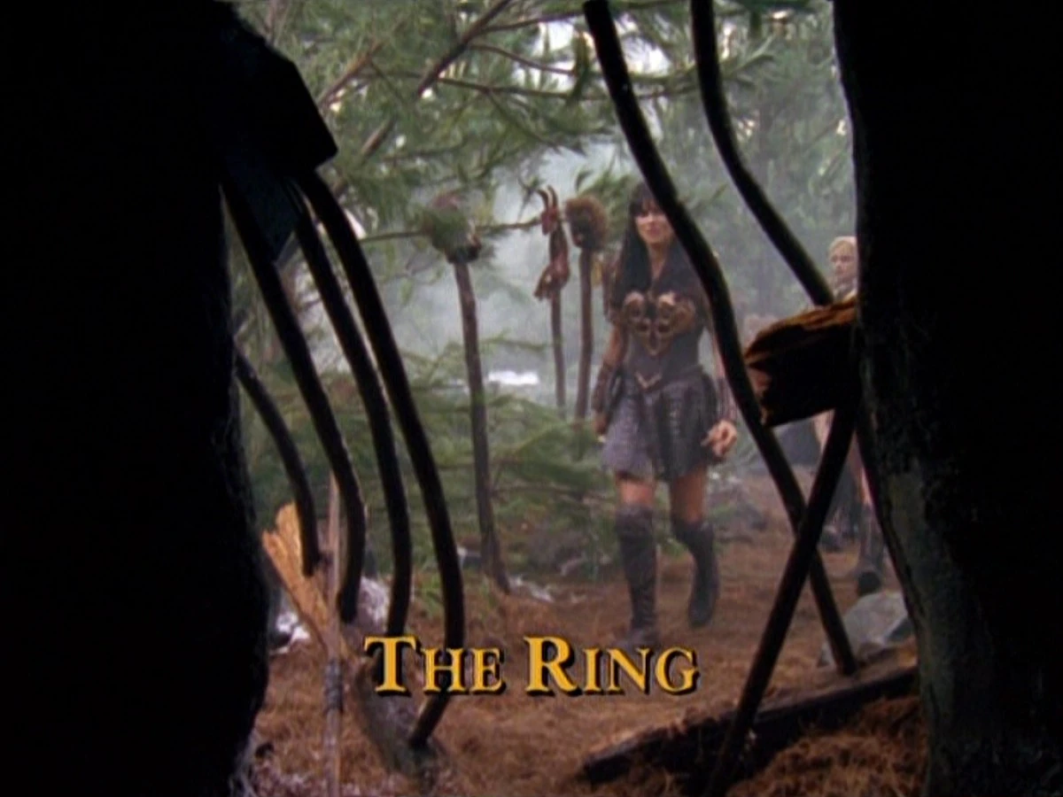 In part two of "The Ring" trilogy, Gabrielle, Beowulf and Brunnhilda follow the tracks of Grindl through the woods. Beowulf and Brunhilda are not convinced that Xena could of survived the attack, but Gabrielle insists the three keep looking. Beowulf moves ahead and finds blood on a tree, and they find its Xena's blood and its where it ends. Gabrielle sees one of Xena's gauntlets on the ground. She picks it up, and continues to move off looking splitting up from Beowulf and Brunhilda.