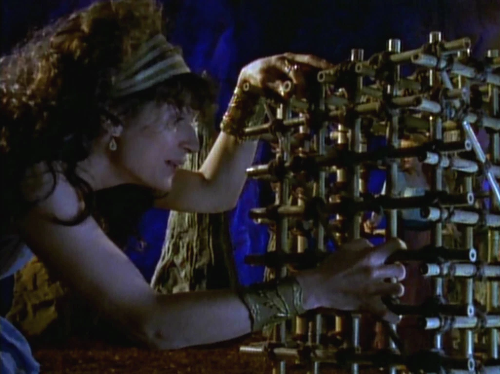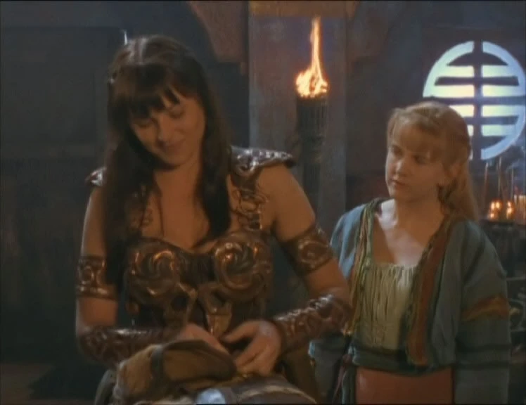 Meanwhile, back at the temple, Philius reports that Gabrielle is missing. Xena suspects Gabrielle is trying to prove herself and fears the worst—that if Gabrielle fell into the Titans’ hands, they might already be trying to release even more Titans. Nonetheless, Xena remains hopeful, knowing Gabrielle is good at stalling. The villagers present a mysterious item, and Xena directs them to bring it to the cave.
