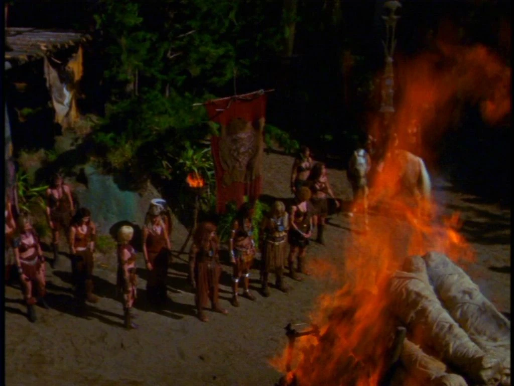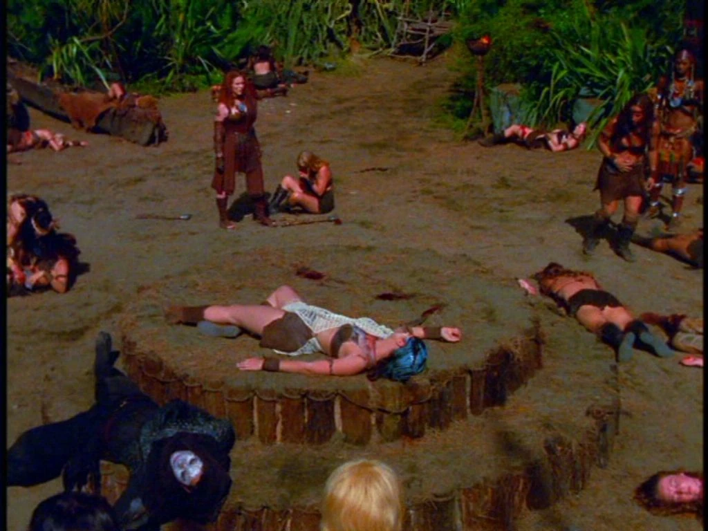 The Amazon village, Xena and Gabrielle celebrate the naming of Varia as new Queen of the united tribe of Amazons. Gabrielle and Varia clasp arms and discuss their fight not so long ago. Since the ceremony is restricted to Amazons, Xena agrees to sleep in the forest while Gabrielle enjoys the festivities.