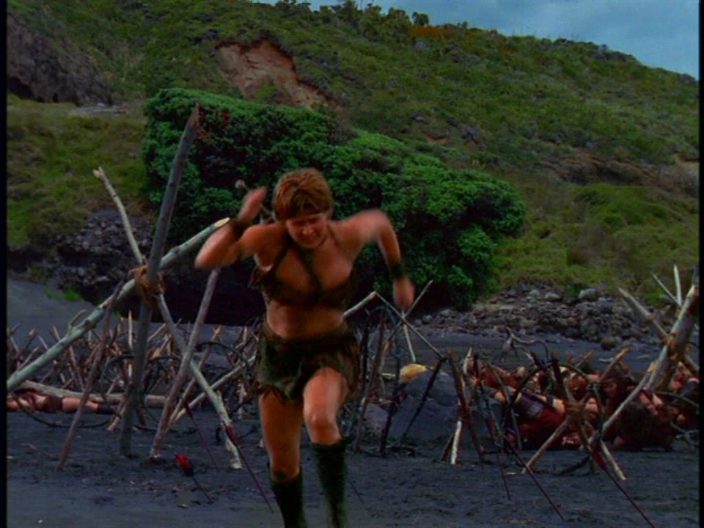As Xena and Tyro finish the raft, they notice Gabrielle struggling to grab Amazon weapons at the water's edge. Xena reaches Gabrielle and pushes her out of the way just before she is hit by a catapult. Xena grows suspicious when Gabrielle says that Varia ordered her to gather the weapons. Walking back, they see Varia crouched, shooting arrows at them.