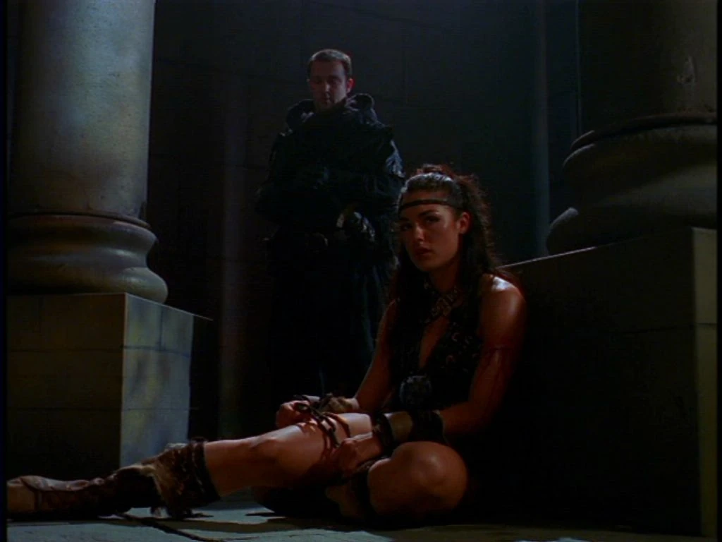 Later, Gabrielle and Xena discuss vengeance and leadership. Xena admits she’s considering surrendering to Bellerophon, but Gabrielle warns it would only lead to more conflict. Xena praises Gabrielle’s mercy toward Varia, while Gabrielle acknowledges the burden of command—accepting that she must lead and fight as the Amazon queen, even if it means changing who she once was.