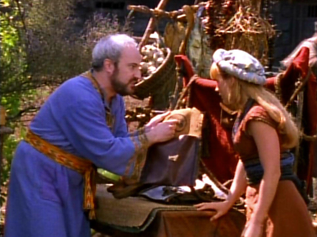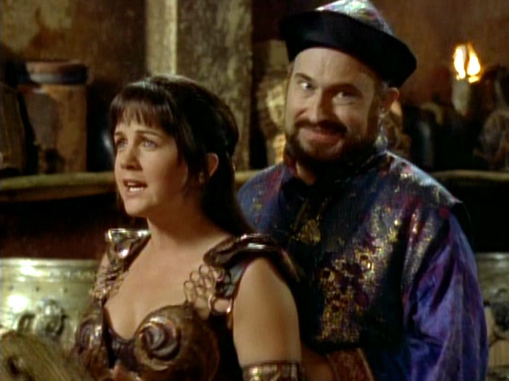 | Xena is hit with a poison dart and is unable to defend a village. Gabrielle and Salmoneus team up to defend the village, until Xena's condition gets worse. | ||||||